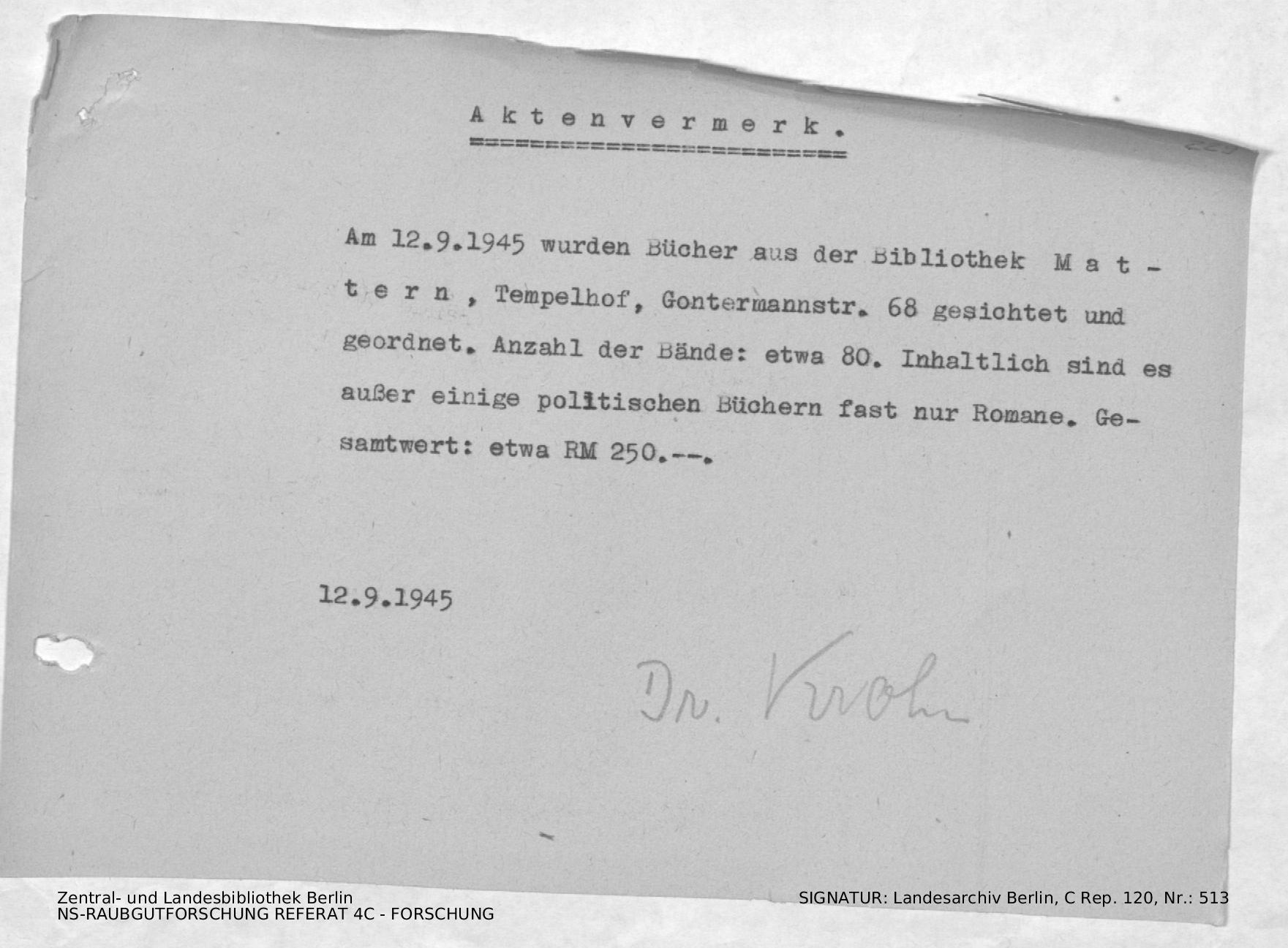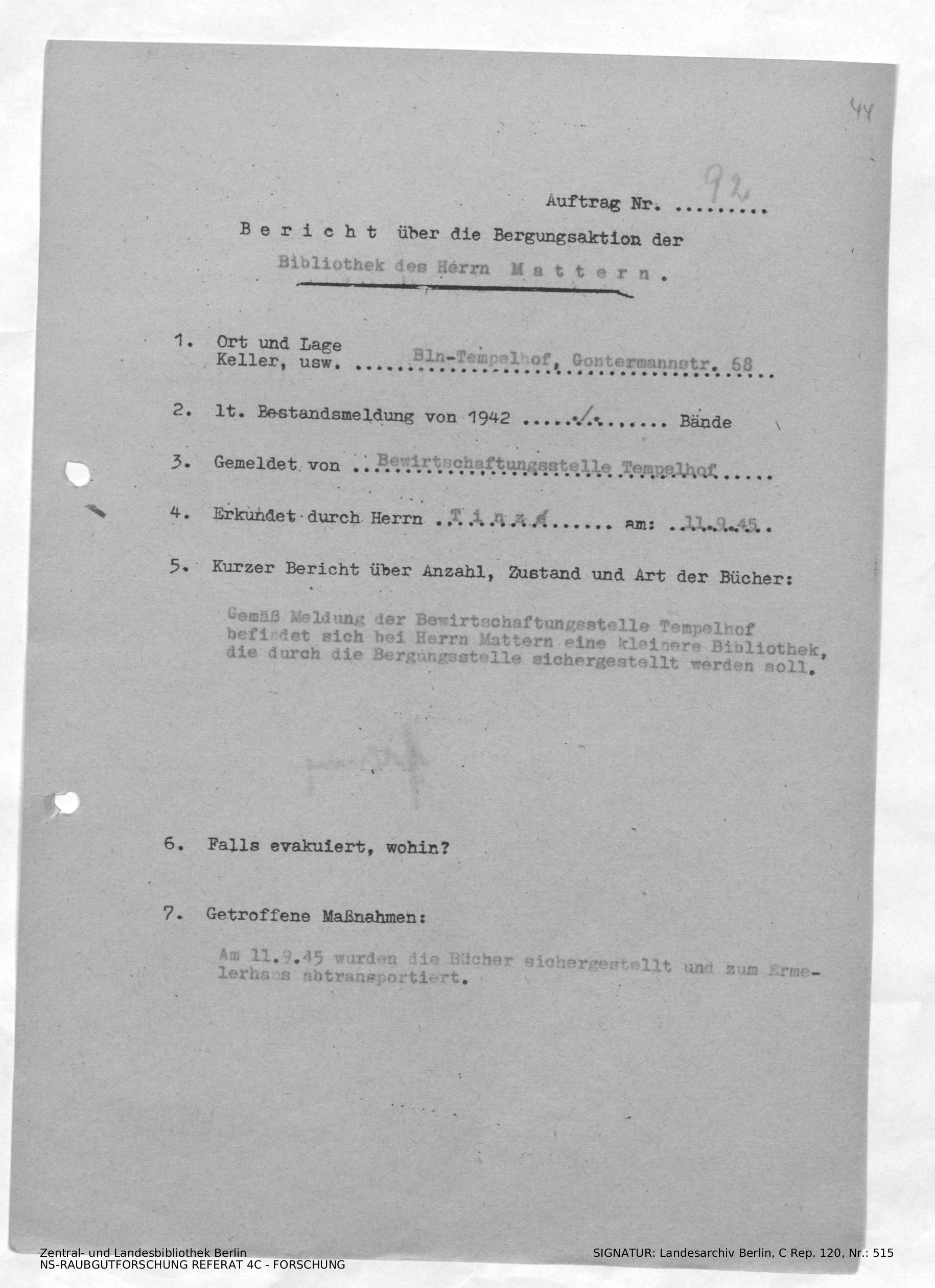 Bergungsnummer in ZLB gefunden