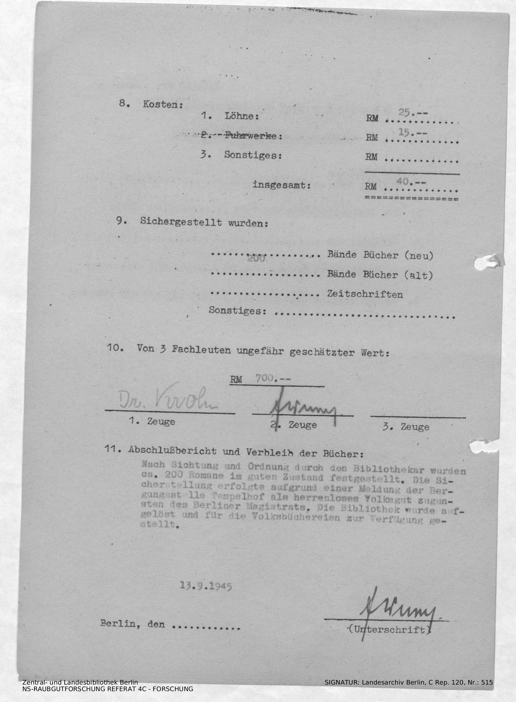 Verbleib der Bücher