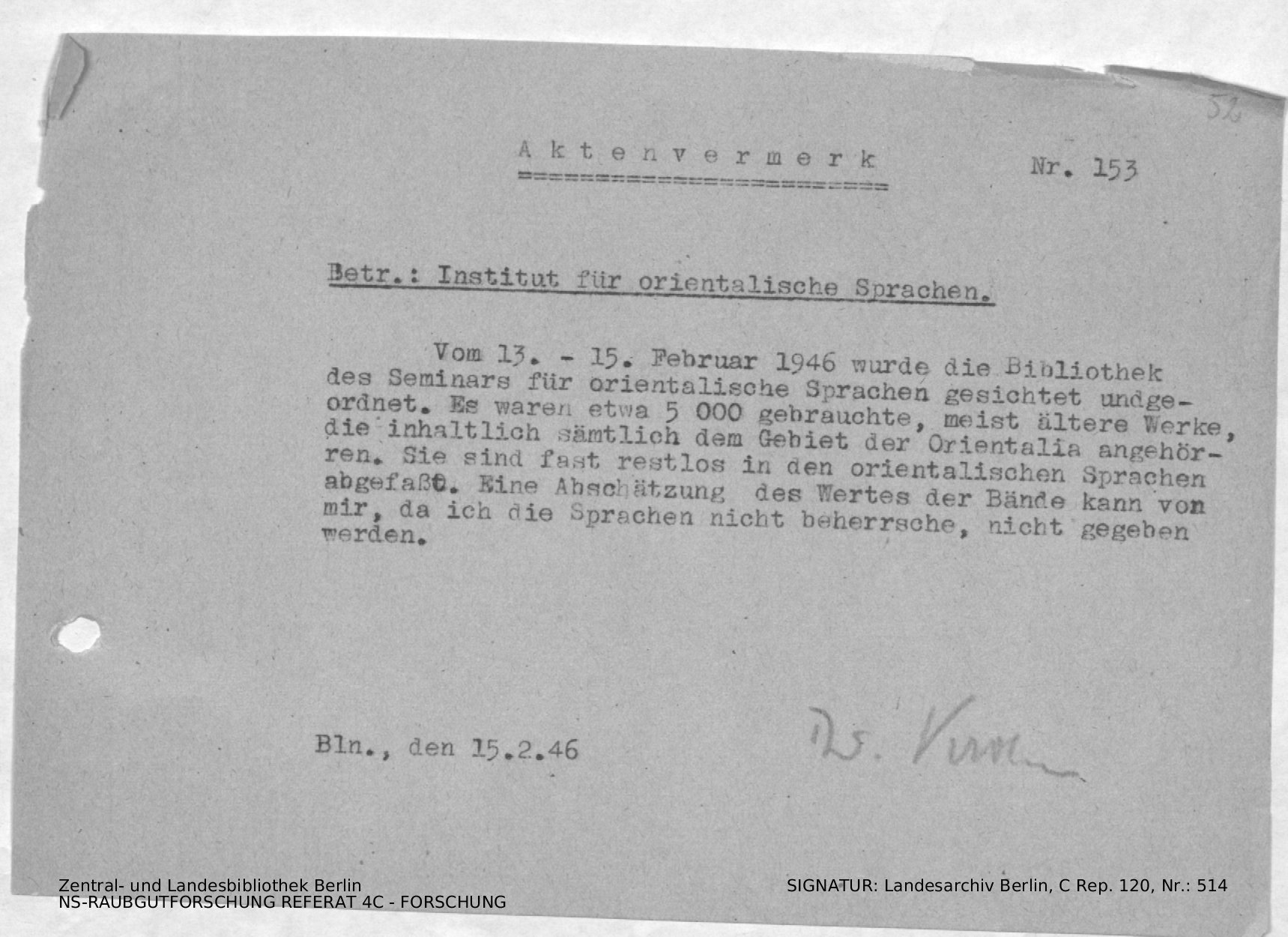 AV: Bestandsbeschreibung und Bewertung der Bibliothek des Seminars für orientalische Sprachen