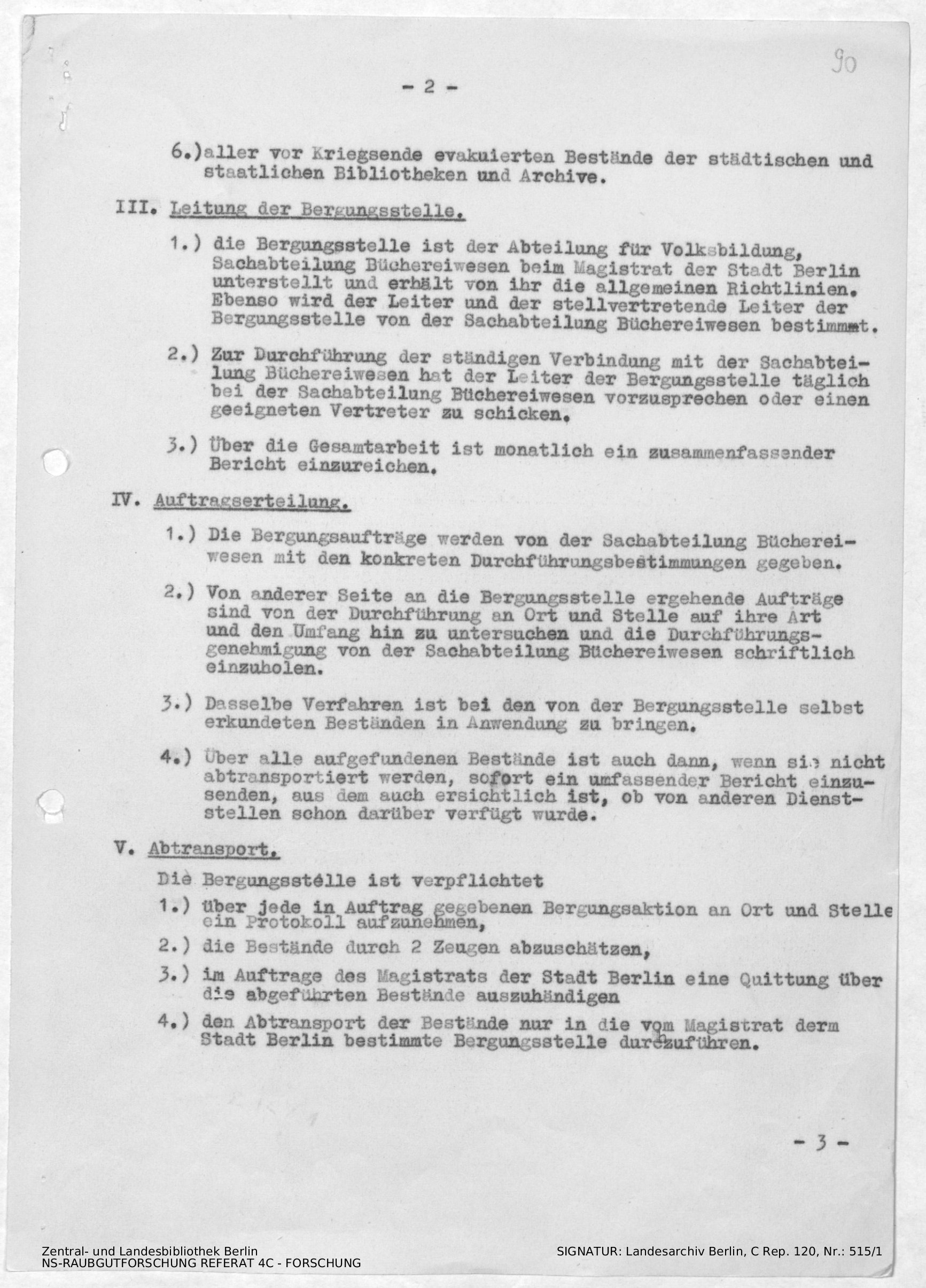 Mitteilung zur Organisation und Aufgaben der Bergungsstelle