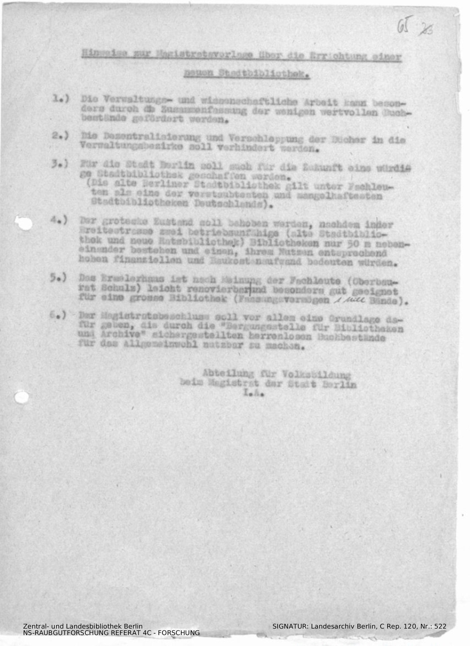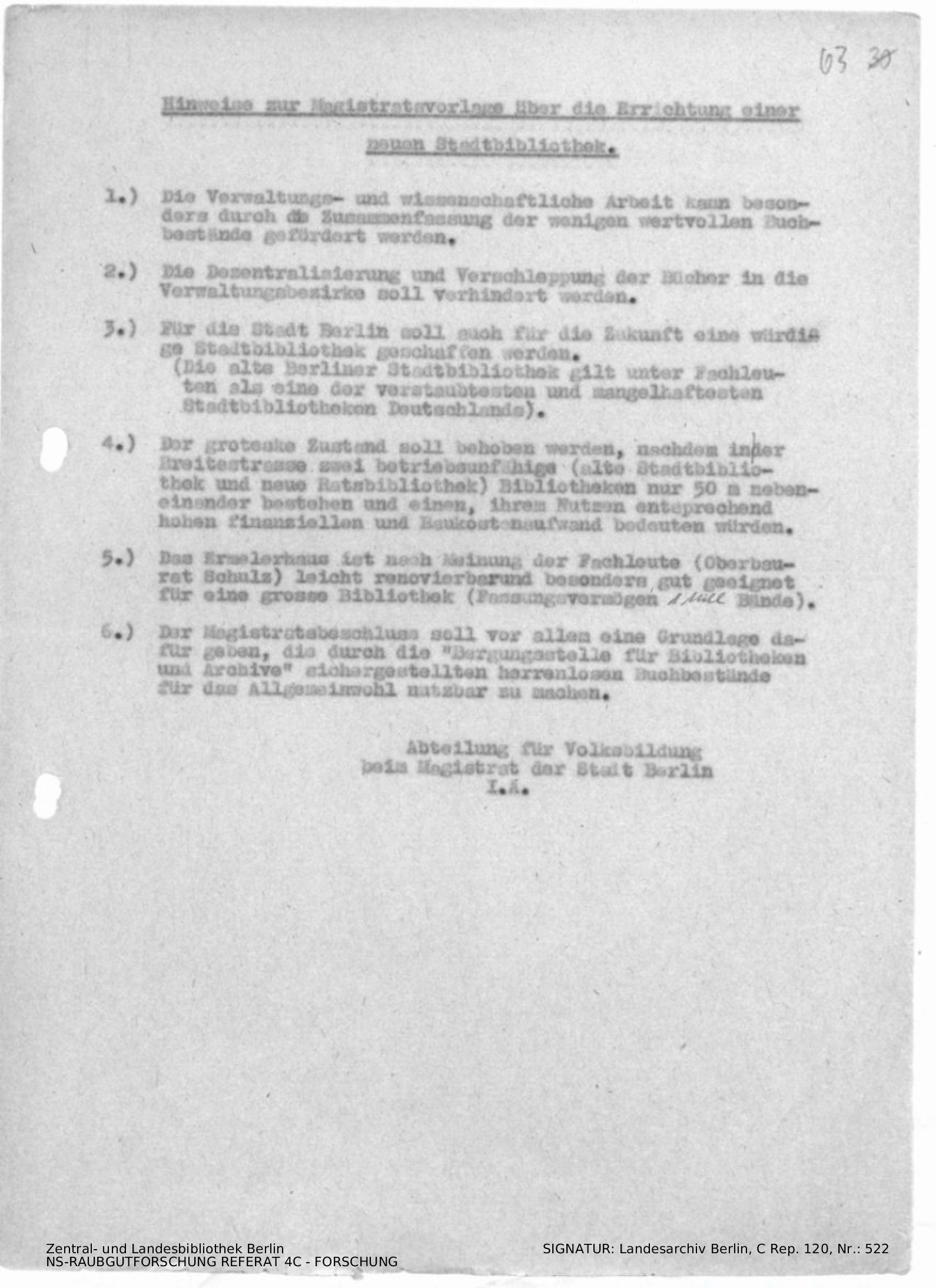 Magistrat von Berlin, Abteilung Volksbildung