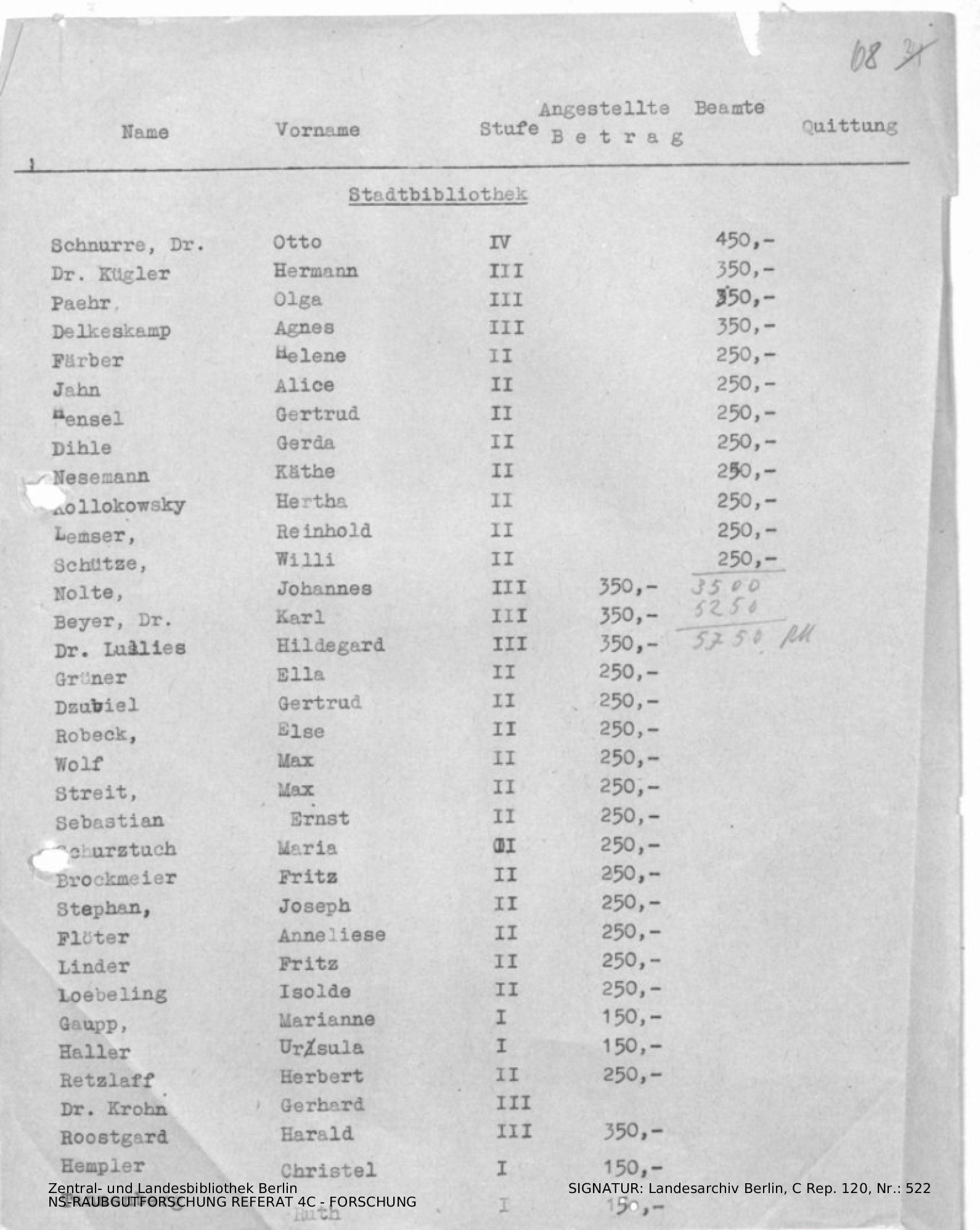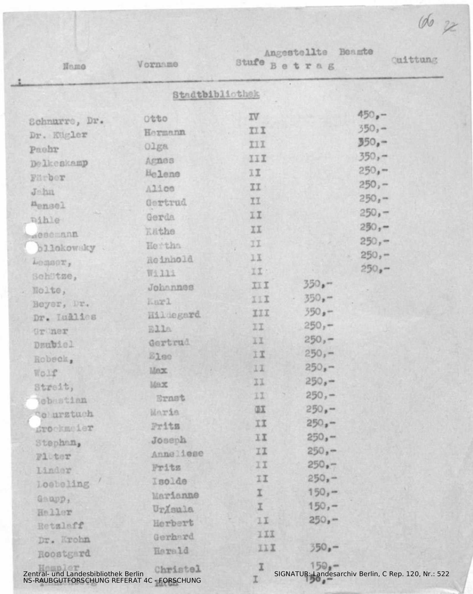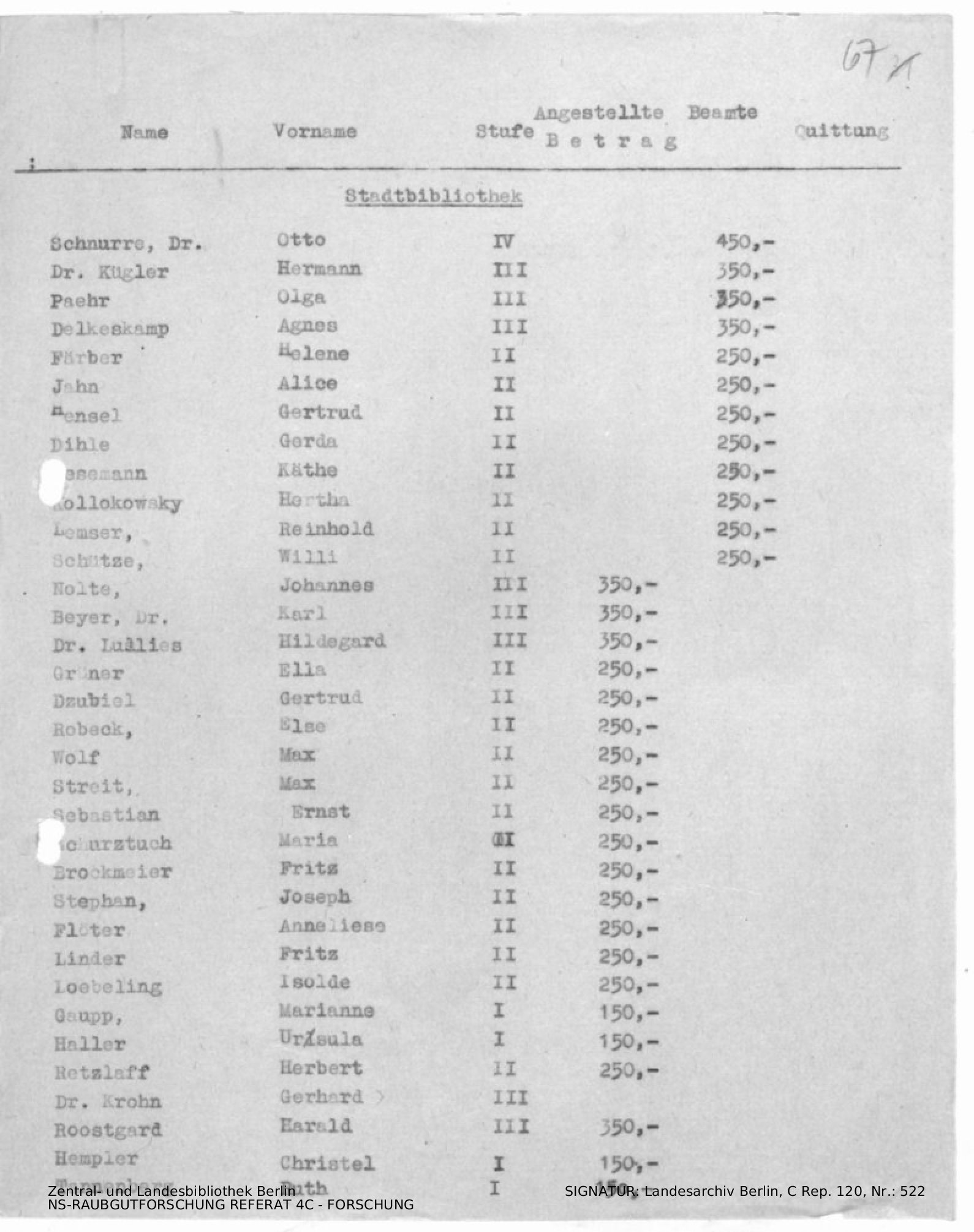 Hinweise zur Magistratsvorlage, Liste von Angestellten / Mitarbeitern.
