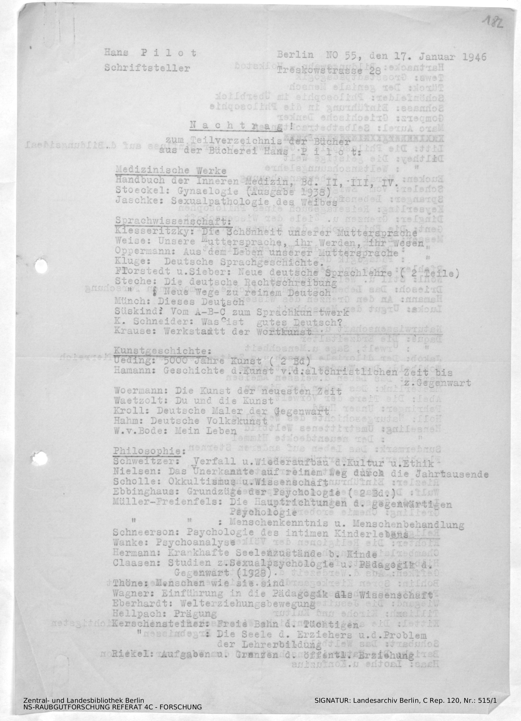 Schriftwechsel zu Büchern von/für Hans Pilot (Schriftsteller)