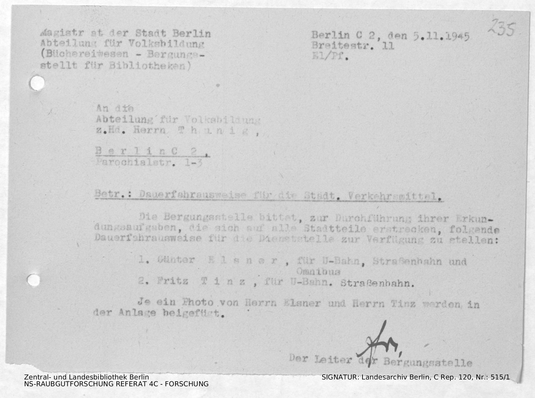 Schriftwechsel zu Fahrkarten und Beheizung von Diensträumen